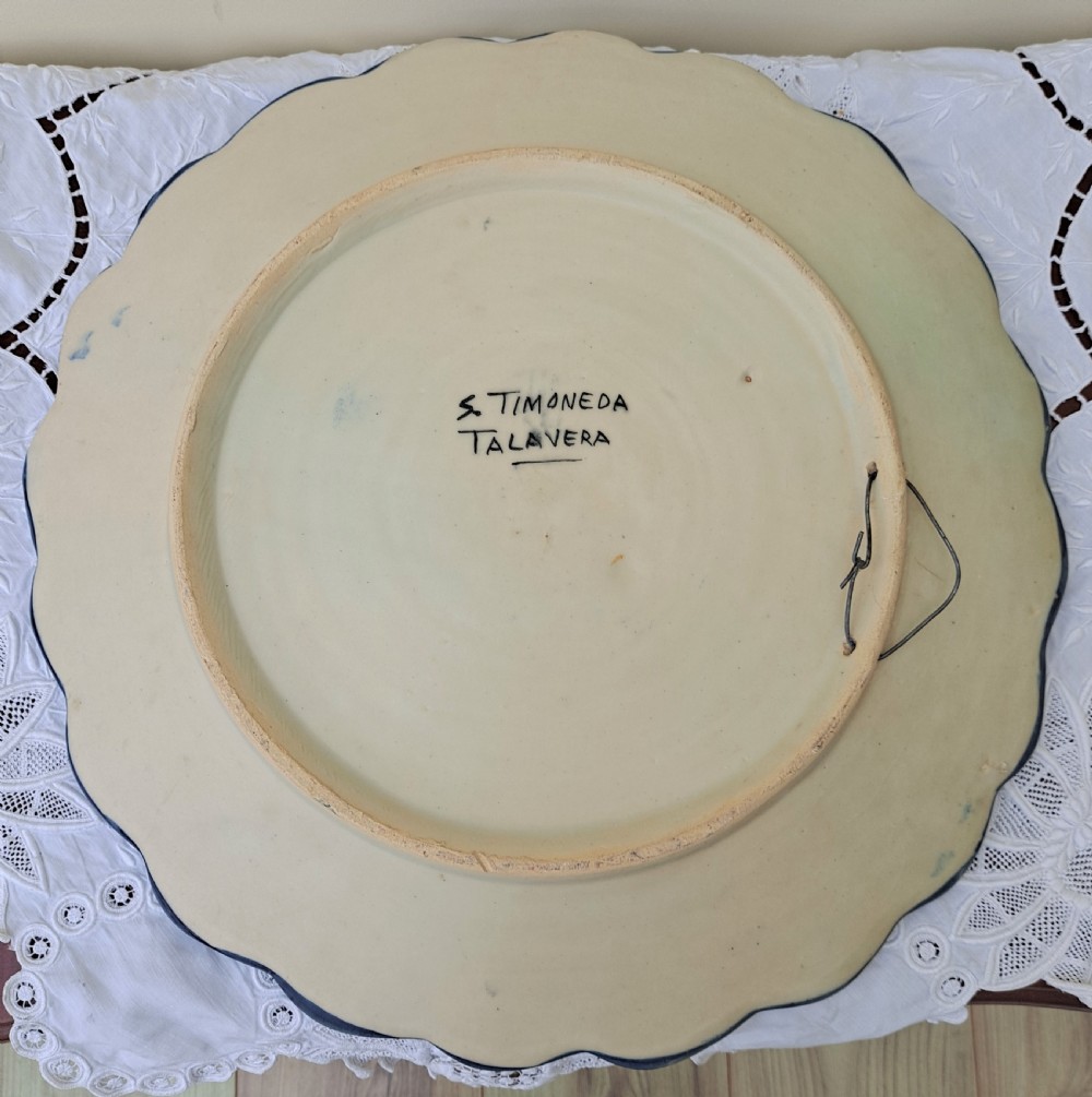 A large and decorative Mid / Late 20th Century Vintage Spanish Talavera Faience Plaque, pierced for hanging, and depicting the eponymous hero of Miguel de Cervantes novel, Don Quixote, accompanied by his faithful squire, Sancho Panza. Produced at the Talavera de la Reina pottery in Toledo, the plaque is signed on the reverse S. TIMONEDA TALAVERA for Santos Timoneda Perez. Height ~ 40.00 cm. / 15.74 inches ~ Width ~ 40.00 cm. ~ 15.74 inches ~ Depth ~ 4.00 cm. / 1.57 inches ~ Year ~ Circa 1972 PACKING, LOSS IN TRANSIT INSURANCE AND EXPRESS SHIPPING FOR THIS ITEM VIA A ROYAL MAIL TRACKED AND SIGNED FOR SERVICE :- WITHIN U.K. ~ FREE OF CHARGE ~ WITHIN E.U. ~ £55.00 GBP ~ REST OF THE WORLD ~ £75.00 GBP PLEASE ADD THE ABOVE SHIPPING FEE TO YOUR ORDER WHERE APPROPRIATE ~ THANK YOU Love This Item ? ~ Why Not Make Us An Offer ? Our Warranty:- Buy it, enjoy it and take good care of it, subject only to these conditions, we undertake to accept this item back at any time and to credit the original purchase price against further purchases. Just one of the thousands of warranted antiques ~ vintage collectables ~ catalogues and antiques reference works for sale at our main website ~ https://www.applecrossantiques.com Internal Ref: VSTFPDQ-128